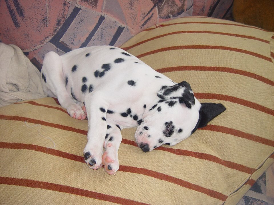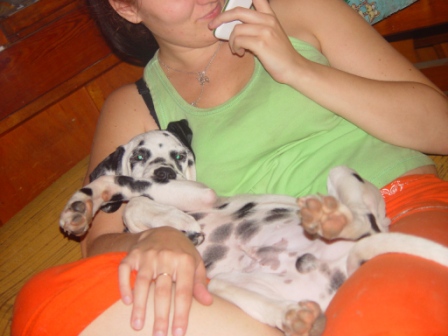 Toto byly děti lásky. Po těžkém porodu císařským řezem se narodila dvě štěňata. Pejsek Harry a fenečka Hanny. Oba černě tečkovaní.