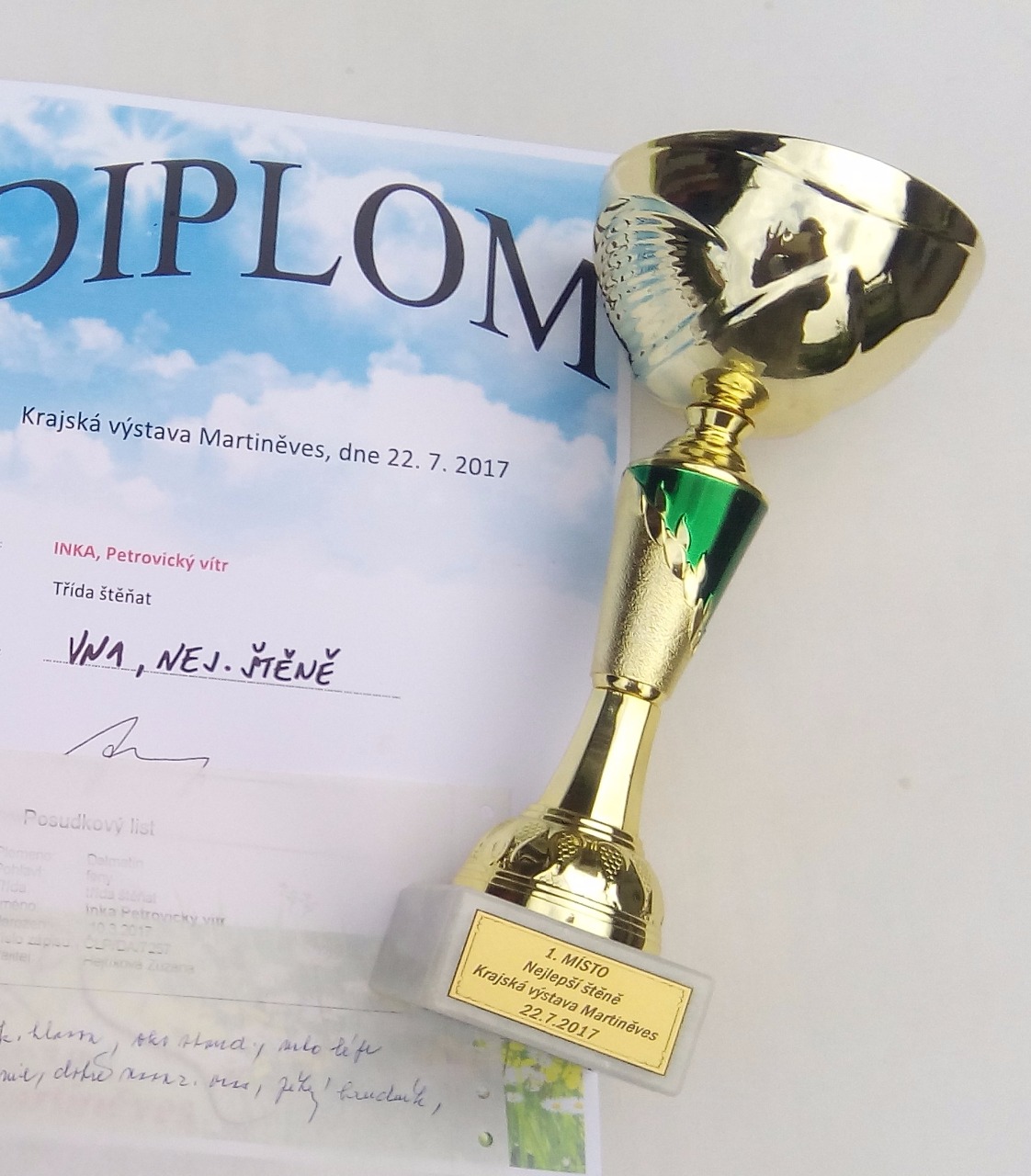 Dne 22.7.2017 proběhla v MARTINĚVSI KRAJSKÁ VÝSTAVA PSŮ. Inka zde byla společně s našimi dalšími pejsky přihlášena a posouzena.